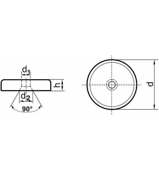 Neodym-Magnet-Flachgreifer mit Durchgangsbohrung und Ansenkung