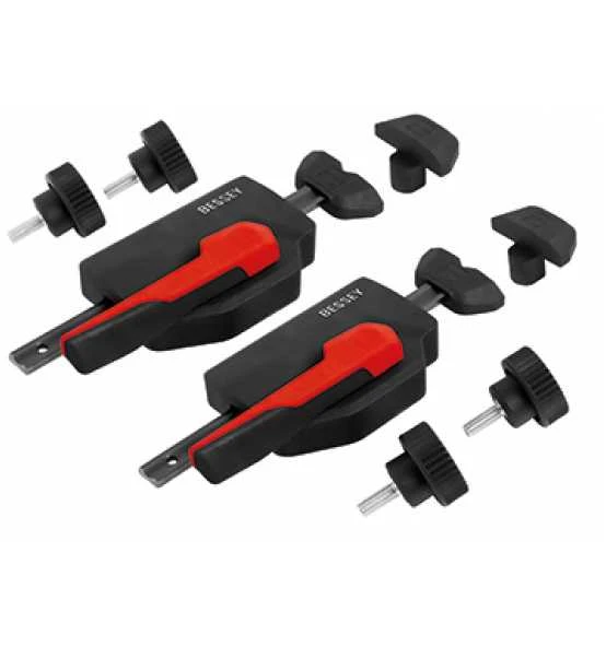 - Patentierter Niederzugmechanismus verhindert, dass sich das Werkstück beim Spannen von der Tischfläche abhebt auch ohne Befestigungsschraube