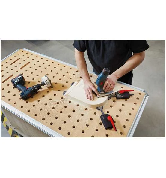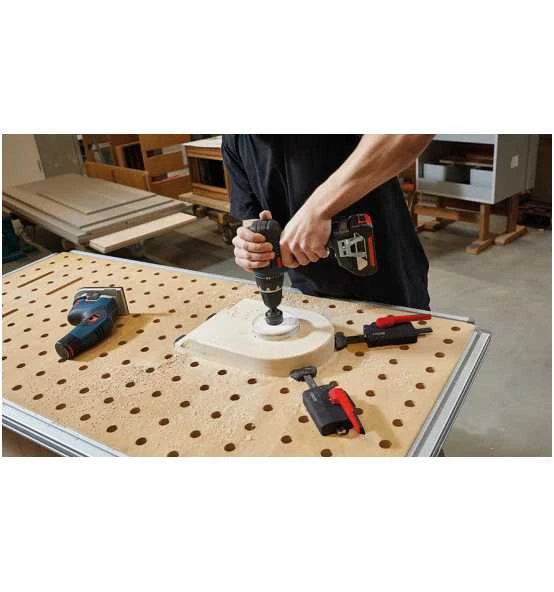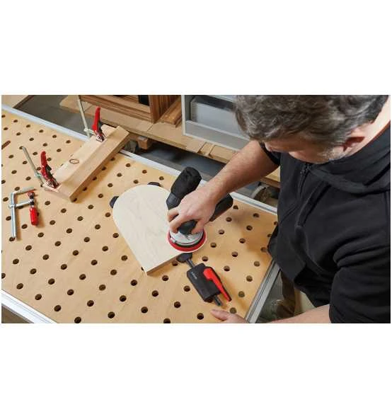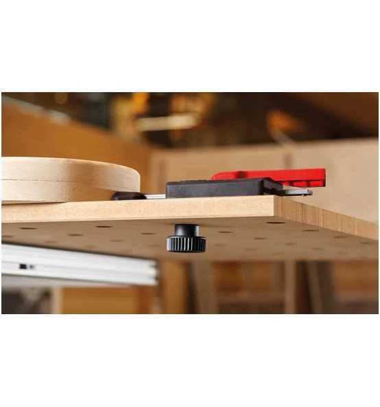 - Zum Einsatz auf Multifunktionstischen wie z.B. Festool MFT und Sortimo WorkMo mit Lochdurchmesser 20 mm und Plattenstärke von min. 19 mm