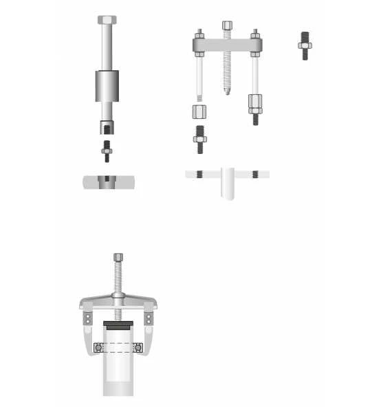 • Zum Abziehen von z. B. Lager, Zahnrädern eingesetzt, die auf Hohlwellen oder in Gehäusen gelagert sind
