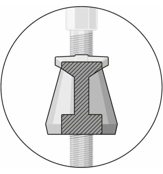 • Mit der neuentwickelten selbsttragenden Hakenform ist es möglich, diese höheren Kräfte verlustfrei über die Traverse zu erwirken