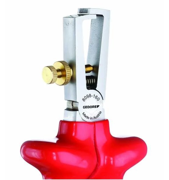 • Schnitttiefeneinstellung mit Messingschraube, Öffnungsfeder für Drähte von 0,8 – 6,0 mm2