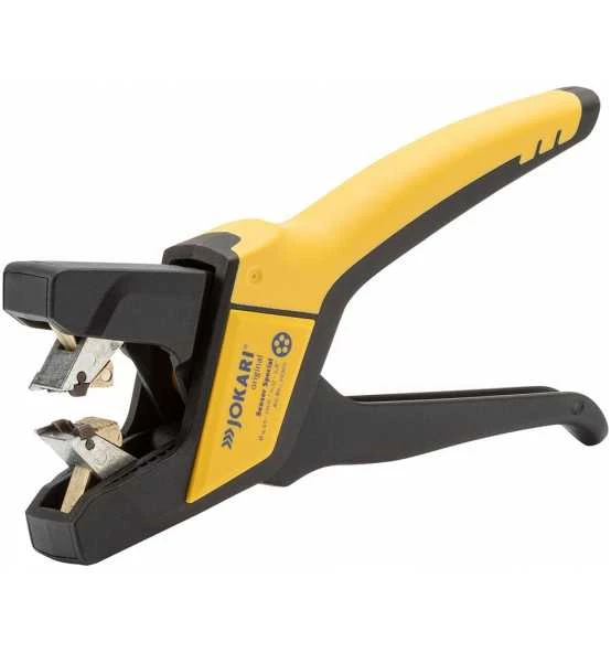 Aus glasfaserverstärktem Kunststoff, mit auswechselbaren Klingen. Kabelführung durch die Zangengriffe, dadurch ist eine beliebige Abisolierlänge möglich. Keine Einstellung auf Leiterquerschnitt erforderlich. Zum sicheren Abisolieren von geschirmten und ungeschirmten, halogenfreien Sensor-/Aktorkabeln mit PUR- oder PVC-Außenmantel und 3- bis 8-adrigem Kabelaufbau ohne Beschädigung der inneren Leiter oder des Schirmgeflechts.