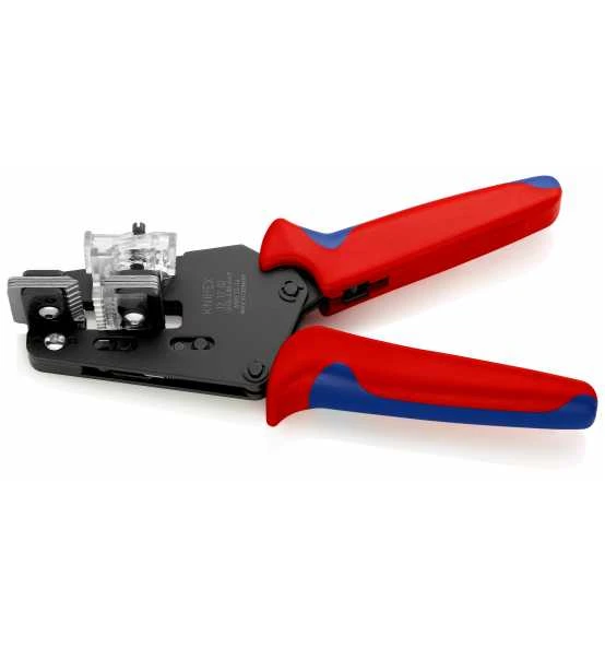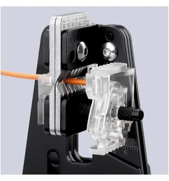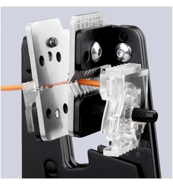 12 12 02 Präzisions-Abisolierzange Formschlüssiges Abisolieren auch von schwer zu entfernenden Isolierwerkstoffen aus PTFE, Silikon, Radox, Kapton und Gummi; auch mehrlagig.