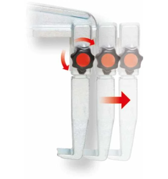- durch Umstecken der Haken als Innen- und Außen-Abzieher verwendbar