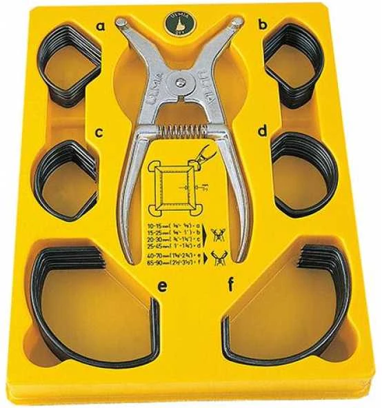 Inhalt: Je 8 Spannklammern Größe A, B, C, D, E, F und 1 Spreizzange.