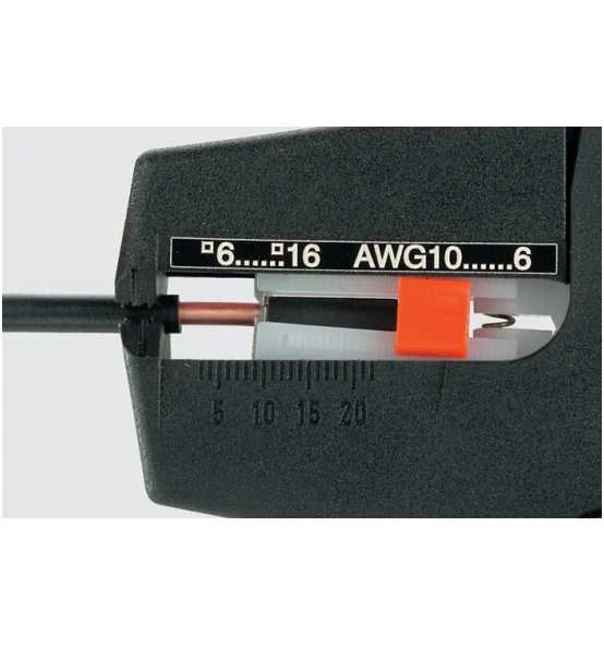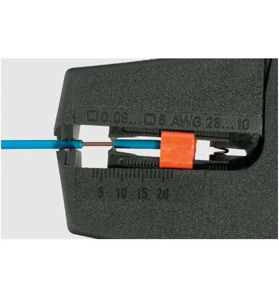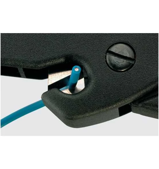 - Zum Abisolieren und Schneiden von feindrähtigen und massiven Leitern mit PVC-Isolation