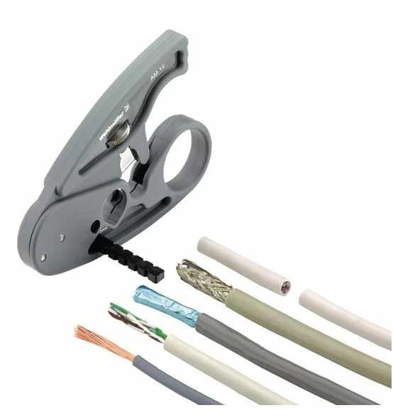 für geschirmte und ungeschirmte Datenkabel · einstellbare Isoliermesser · Entfernen der Außenisolation (PVC und Plenum) von Twisted Pair (UTP und STP) und anderen runden, mehradrigen Datenkabeln · Entfernen von dünnen und dicken Außenisolationen, feindrähtige Kupferkabel bis 4 mm² sowie gedrehte Datenkabel bis Ø ca. 0,5 – 12,5 mm Weitere technische Eigenschaften: · Gewicht: 36g